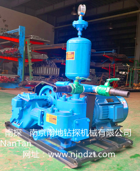 BW-160A型泥漿泵也就是BW160泥漿泵,為臥式單缸雙作用往復(fù)活塞式泵,泵頭上裝有四個Ф40鋼球閥,從而提高了壓力。主要用于物探中向爆破孔內(nèi)提供沖洗液,亦可用于工程地質(zhì)鉆機基巖鉆進中向井內(nèi)供給沖洗液,該泵具有體積小、重量輕、耐用等特點,更適合地質(zhì)勘探上使用。也可以進行水泥注漿、泥漿注漿灌漿等施工。