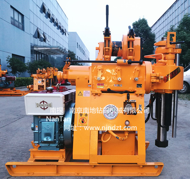 鉆機(jī)介紹:XY-200型鉆機(jī)集合了目前市場(chǎng)流行的XY-1、XY-1B、XY-1A等小型鉆機(jī)的主要功能和特點(diǎn)設(shè)計(jì)而成的。即采用XY-1的油壓自動(dòng)給進(jìn),XY-1B的大模數(shù)齒輪傳動(dòng)系統(tǒng),XY-1A的寬范圍轉(zhuǎn)速的較大扭矩輕型回轉(zhuǎn)鉆機(jī)。 為使本機(jī)的適用性更廣泛,滿(mǎn)足不同用戶(hù)的需求,推出移機(jī)型XY-200(YJ)型鉆機(jī)(帶移機(jī)功能)、增加了水泵(不帶移機(jī)) 的XY-200-1型和帶移機(jī)帶水泵功能的XY-200-2型鉆機(jī)。鉆機(jī)、柴油機(jī)(或電動(dòng)機(jī))安裝在同一底座上。鉆進(jìn)深度可達(dá)200米。