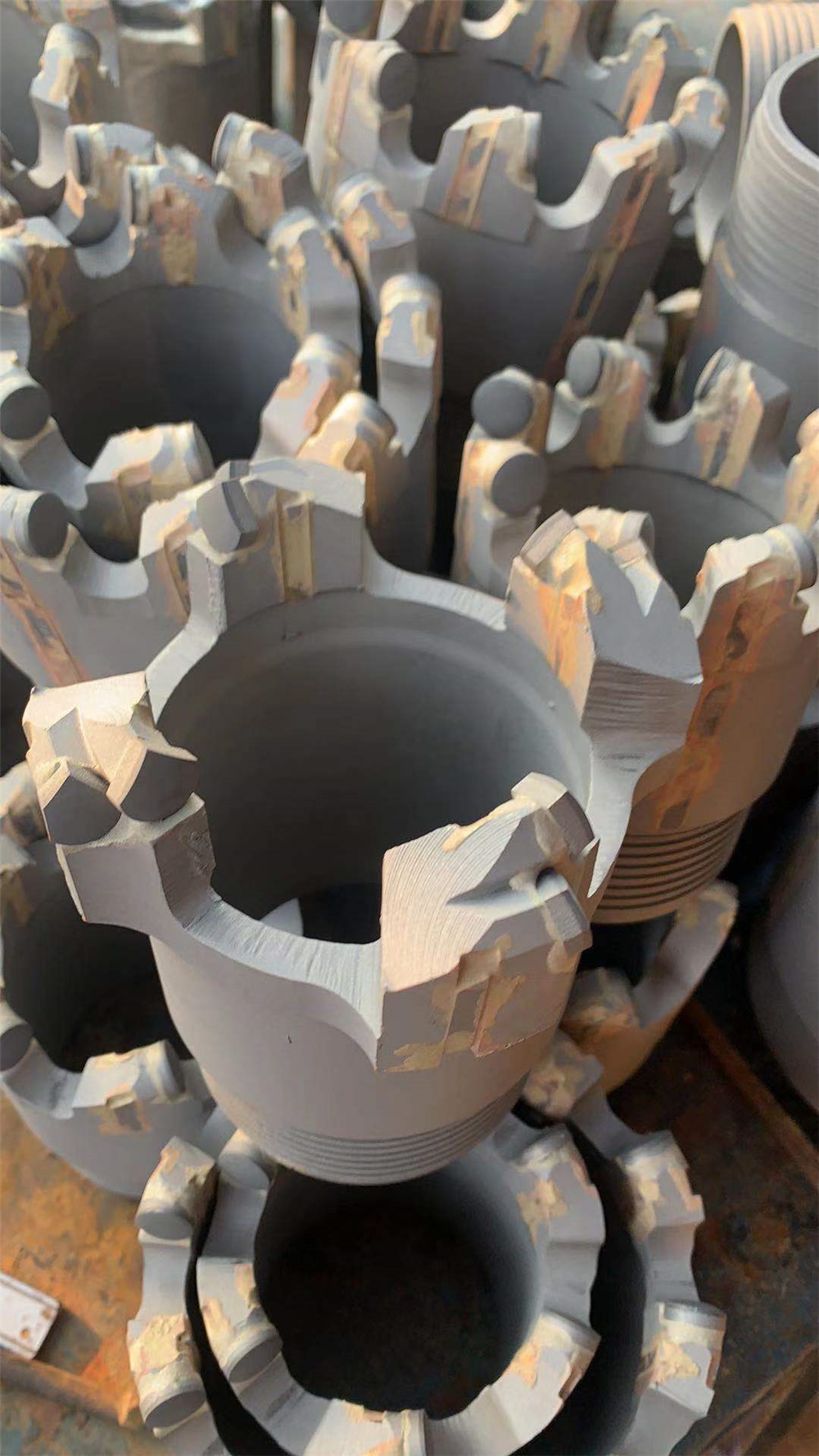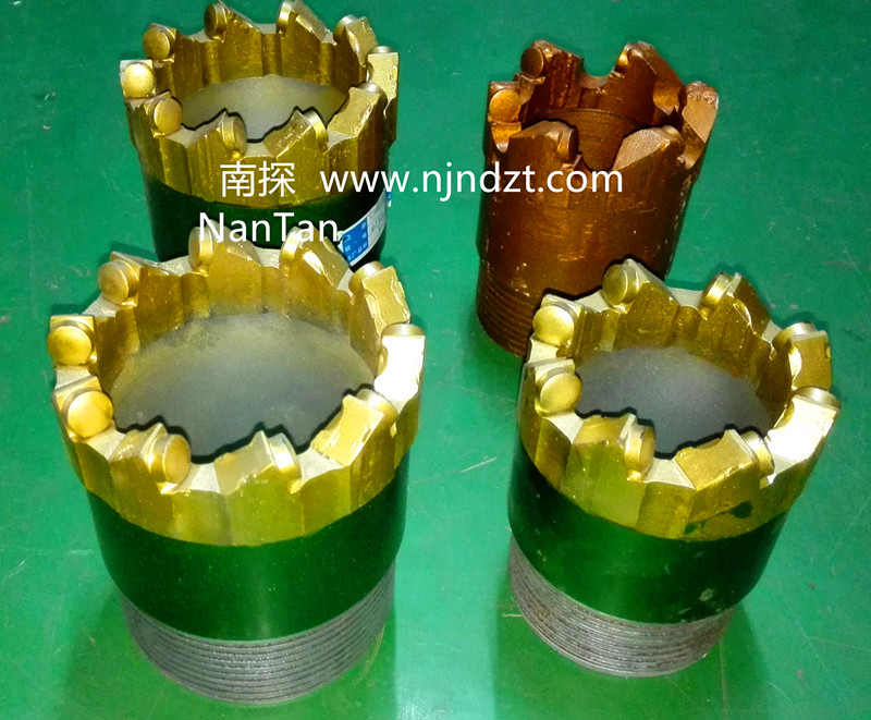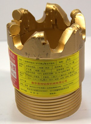 金剛石復(fù)合片取心鉆頭又有普通鉆頭(巖心管)和繩索鉆頭(配套繩索取芯鉆桿)。