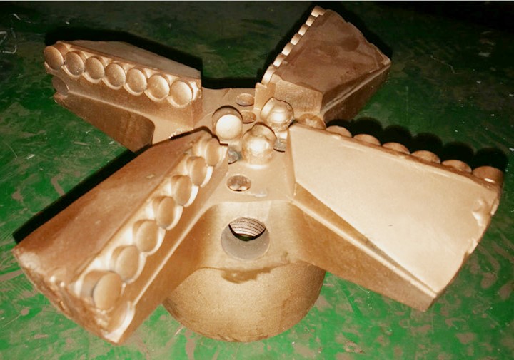 金剛石復(fù)合片(PDC)鉆頭,以金剛石復(fù)合片為主要切削元件,以刮削剪切原理進(jìn)行巖層破碎,適用于軟—中硬地層的鉆進(jìn),