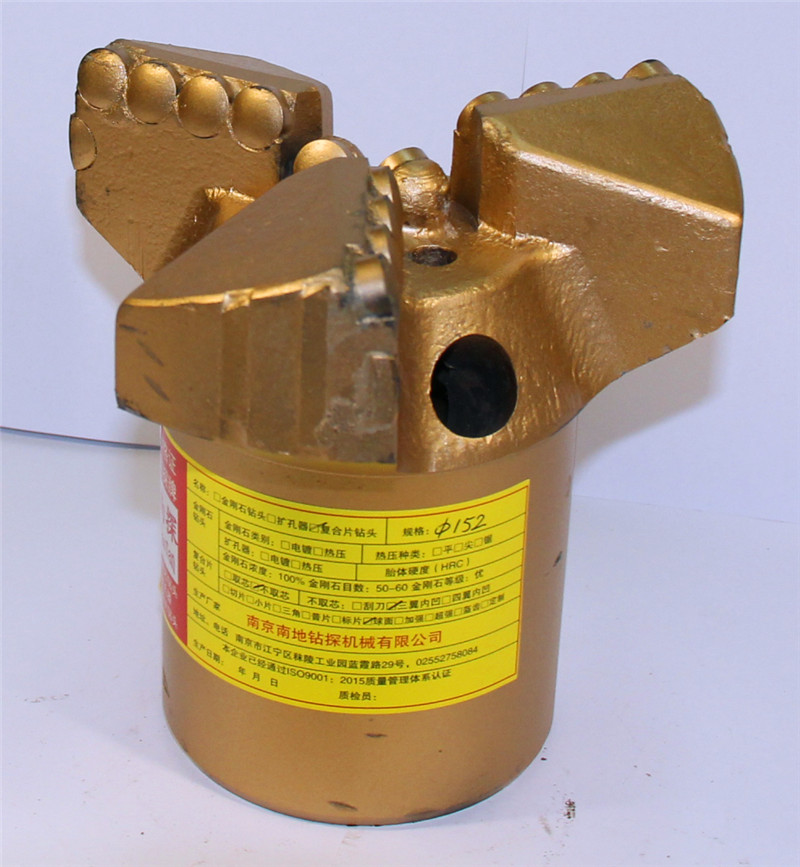 金剛石復(fù)合片不取心鉆頭(三翼、四翼鉆頭)直徑:Φ59、65、77、94、113、133、152、171、200、220,可以用50鉆桿也可以用42鉆桿,也可以用60鉆桿。
