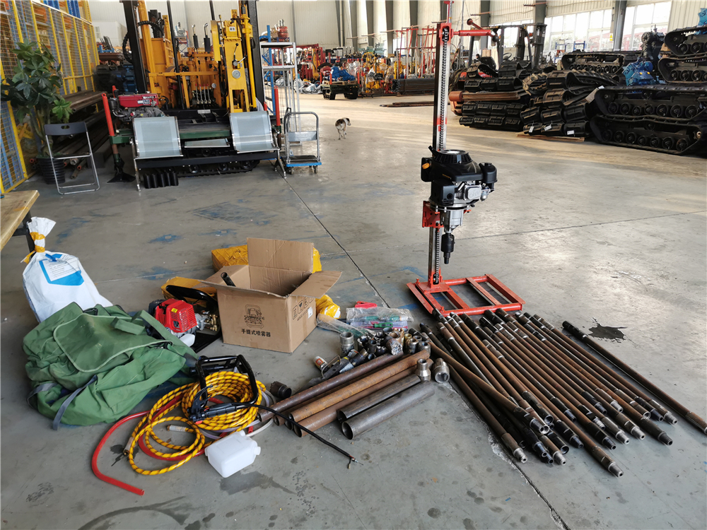 1、取樣鉆機:含汽油發(fā)動機、鉆進(jìn)裝置,鏈條塔式支架。