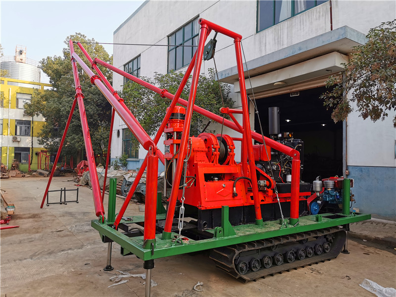 鉆機(jī)機(jī)組由履帶底盤(pán)、柴油機(jī)、液壓支腿、鉆機(jī)、直斜兩用鉆塔組成,共同組裝在一個(gè)機(jī)架上。鉆機(jī)可以選擇柴油機(jī)或電動(dòng)機(jī)、履帶底盤(pán)及液壓支腿由獨(dú)立柴油機(jī)帶動(dòng)、互不干涉。